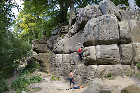 Enjoy the experience of climbing outdoors and the exhilaration of topping out on classic rock in the stunning Peak District and beautifully wooded and secluded Harrison's Rocks. Our qualified and experienced instructors will teach you the skills you need to climb confidently. Challenge yourself on a solo adventure, or arrange a tailor made trip with your friends or a bespoke team building experience. Some indoor climbing experience is required, but no outdoor climbing experience is necessary. Beginners welcome.